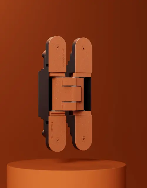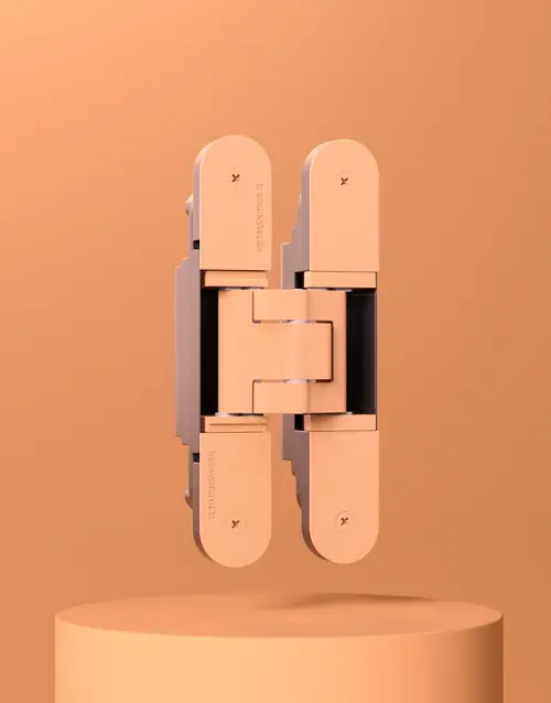SIMONSWERK offers as range of surface finishes, from matt black to bronze to allow door hinges to colour-match a particular design concept. Door hinges in white are the best option for rooms highlighting the new trend colour Peach Fuzz. They emphasise the positive vibrancy of the peach tone while exhibiting masterful restraint. Even stainless steel hinges coordinate perfectly with Peach Fuzz as they have a timeless quality, allowing them to generate real impact with the trend colour.